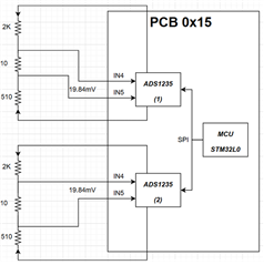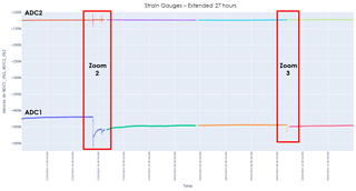 大家好! 我正在使用两个 ADS1235 ADC (特别是 ADS1235QWRHMRQ)进行一个项目、使用应变仪监测钢制物体的变形。 尽管采用了简单直接的设计方法、但仍然存在显著的测量不一致、我会寻求帮助来找出根本原因。