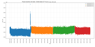 我们在实验室进行了长时间测试、以检查器件在受控环境(温度和电源)下的行为。 这是不同 ADC 的结果:
