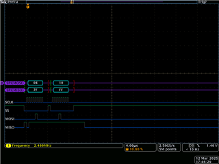 陌生人的时间似乎越来越长:我将 从 命令08h (START/SYNC)开始在连续模式下连续进行3次测量、然后读取三次、但不会 在 DRDY 引脚变为低电平之前读取。 结果分别为 7B7Bh、 FF617Bh 和 FF617Bh 。 加热 PT100不会改变返回的数据、但我看到电压从0.11V 上升到0.14V、Rref 上的电压从0.9V 下降到0.5V
