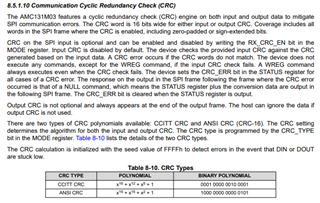 如果 MCU 将数据发送到 amc131m03、则发送 CRC 多项式我们必须仅使用提供 CRC 类型。