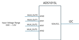 我的客户正在寻找一款具有 I2C 接口的4通道 ADC 产品、它可以接收模拟多路复用器输出作为输入来监控各种类型的电压电平、如下所示。