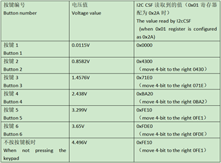 2.按下物理按钮时,读取任何寄存器,读取的值与万用表测得的电压值一致,可以理解为 AD 值。