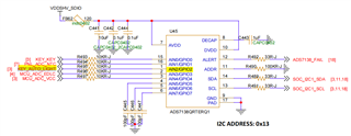 我们团队的开发板计划使用 ADS7138QRTERQ1芯片作为 AD 芯片、以识别物理键盘(引脚 KEY_KEY)的 AD 值、并通过 SOC_SDA 和 SOC_S2C1_SCL 将转换后的 AD 值传输到主控制芯片 AM62A74UMHAAMBR。