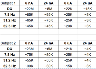 我们使用 ADS1299导联‑Ω 关断/阻抗测量模式、采用以下配置进行了广泛的测试: