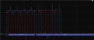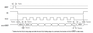 可以看到、在 SCLK 的最后一个下降沿(红色)之后、DOUT (蓝色)立即变为低电平。