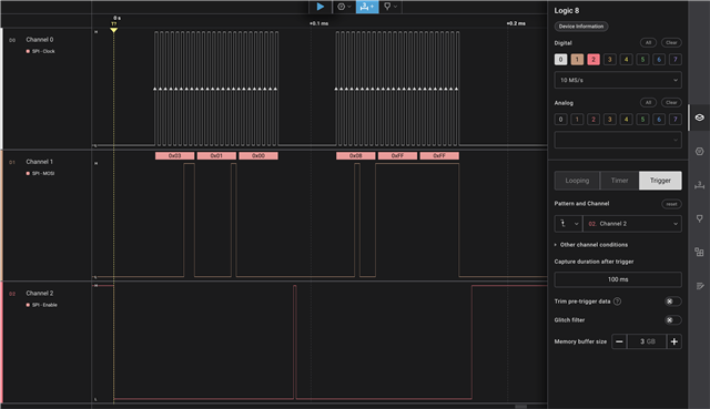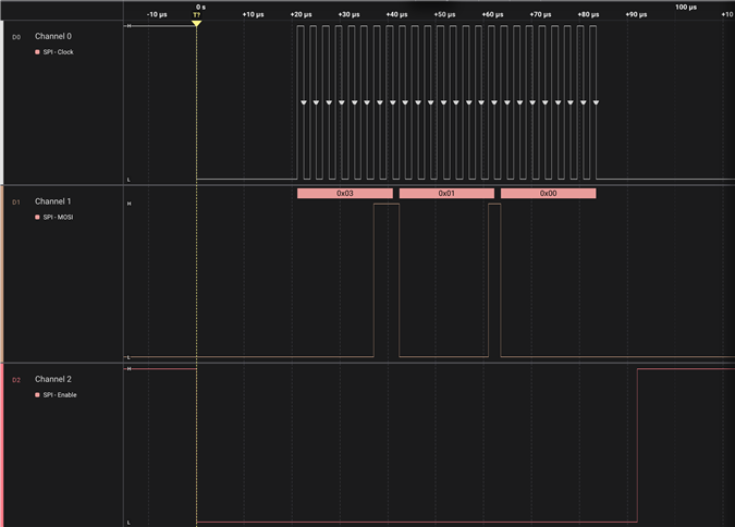 我 还用示波器和示例附加了 SPI 传输的一些数字捕获: