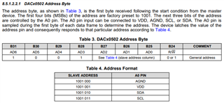 我正在 为我的工程使用两个 DAC80502、在该项目中、它通过 I2C 模式连接到 MCU。 应该为两者提供什么地址、在这种情况下应如何联系?
