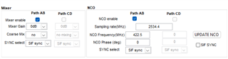 在这些条件下、例如、所需的输出信号是422 MHz、为此使用配置的 DAC NCO 至422.5MHz 生成 FPGA 中的基带、以在 DAC 输出中实现所需信号(422 MHz)。 但问题是、除了422MHz 信号外、另一个信号也恰好出现在与 NCO 相关的图像频率中、位于 DAC 输出中。 在这种情况下、另一个信号以423 MHz 频率出现、具有重要的电平。