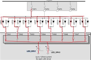 我正在尝试找出是否可以同时将一个 TXP 和八个 TXN 连接到两个 LED 驱动器、如图所示。 因为我在 AFE_SET_PHASEType 函数中发现只能连接一个 TXP 和两个 TXN。