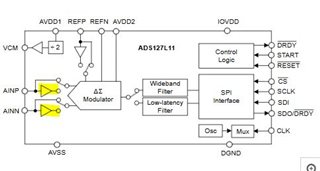 我想知道 ADS127L11是否需要全差分输入放大器。 标题"具有易于驱动的输入和宽带或低延迟滤波器的24位400kSPS Δ-Σ ADC"和方框图