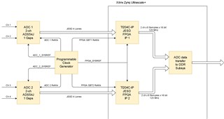 在大多数情况下、当不同 ADC 之间的所有数据都发生最小的移位(1个样本或更少)时、我们可以获得良好的结果。 但有时、在下电上电后、我们会增加两个不同 ADC 的通道之间的相移、这始终是8个差分 ADC 样本。 这不会在单个 ADC 上的通道之间发生、仅在不同 ADC (例如通道1和3、或2和3)之间以及不同 JESD IP 之间发生。