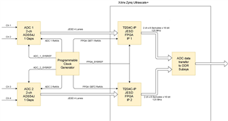 我们并行使用两个 TI204C-IP JESD FPGA IP 从两个 ADC 接收同步数据、如下所示:
