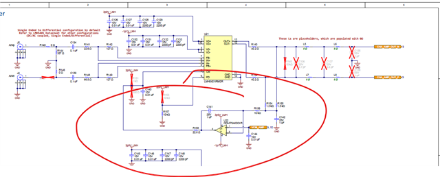 如所附原理图所示、ADC34RF72 的一个共模输出网连接到四个 LMH5401 器件的 CM 引脚。 靠近每个 LMH5401 CM 引脚放置了一个 0.1 µF 接地电容器。