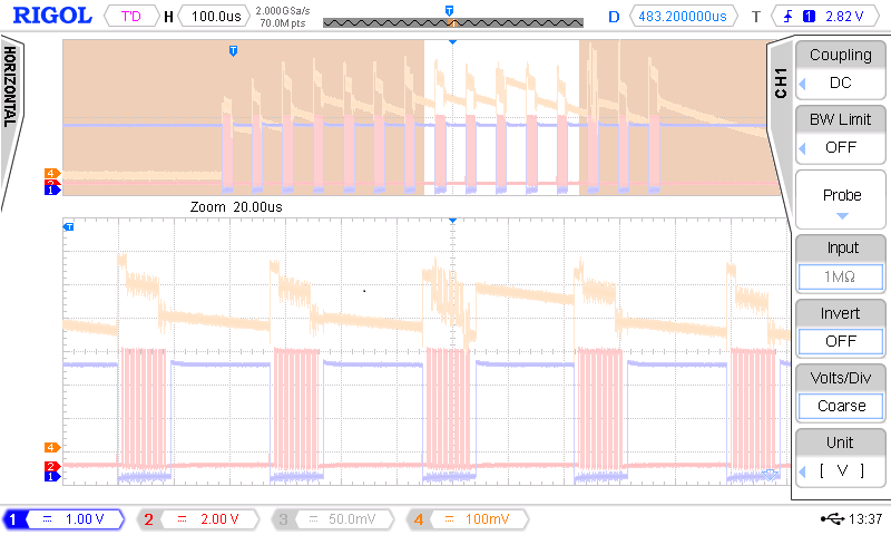 这是之前仅一个通道的缩放采集。 如您所见,没有噪音。
