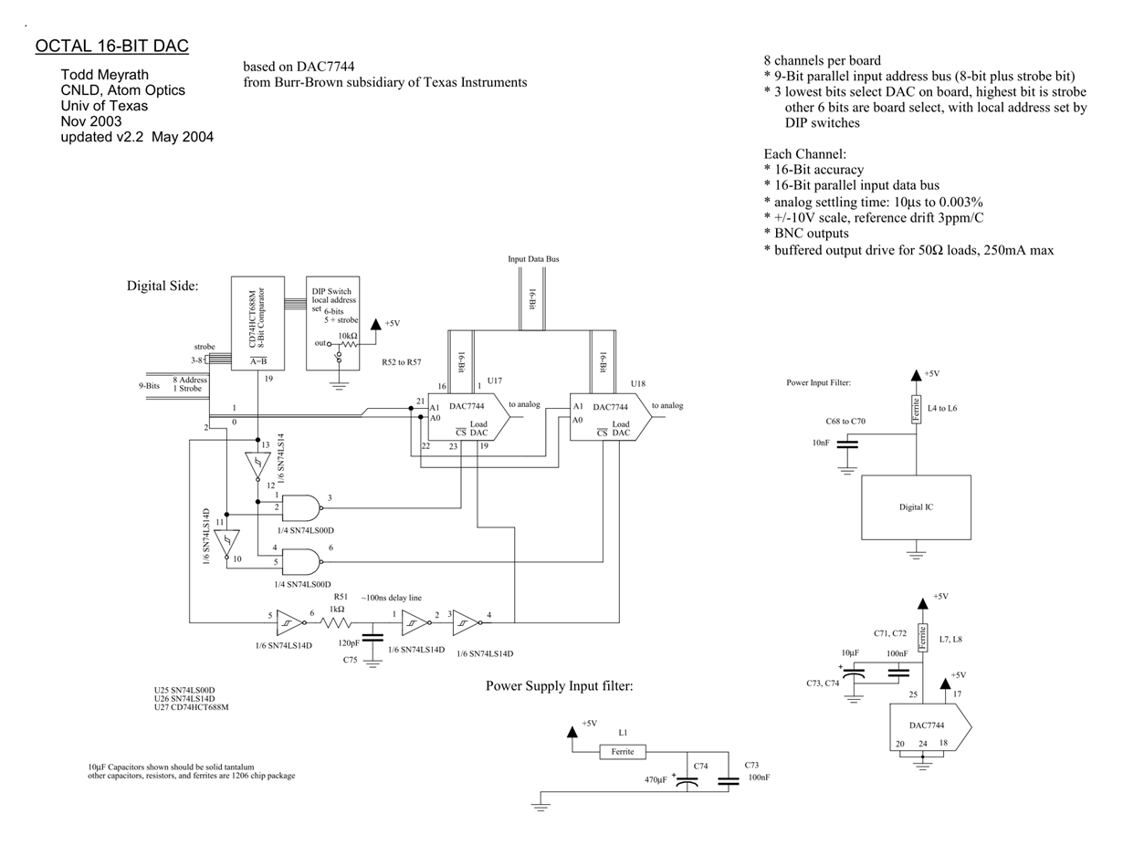 每个板安装两个DAC7744,并具有八个模拟输出通道。 每个板的电源为+/-15V和5V。