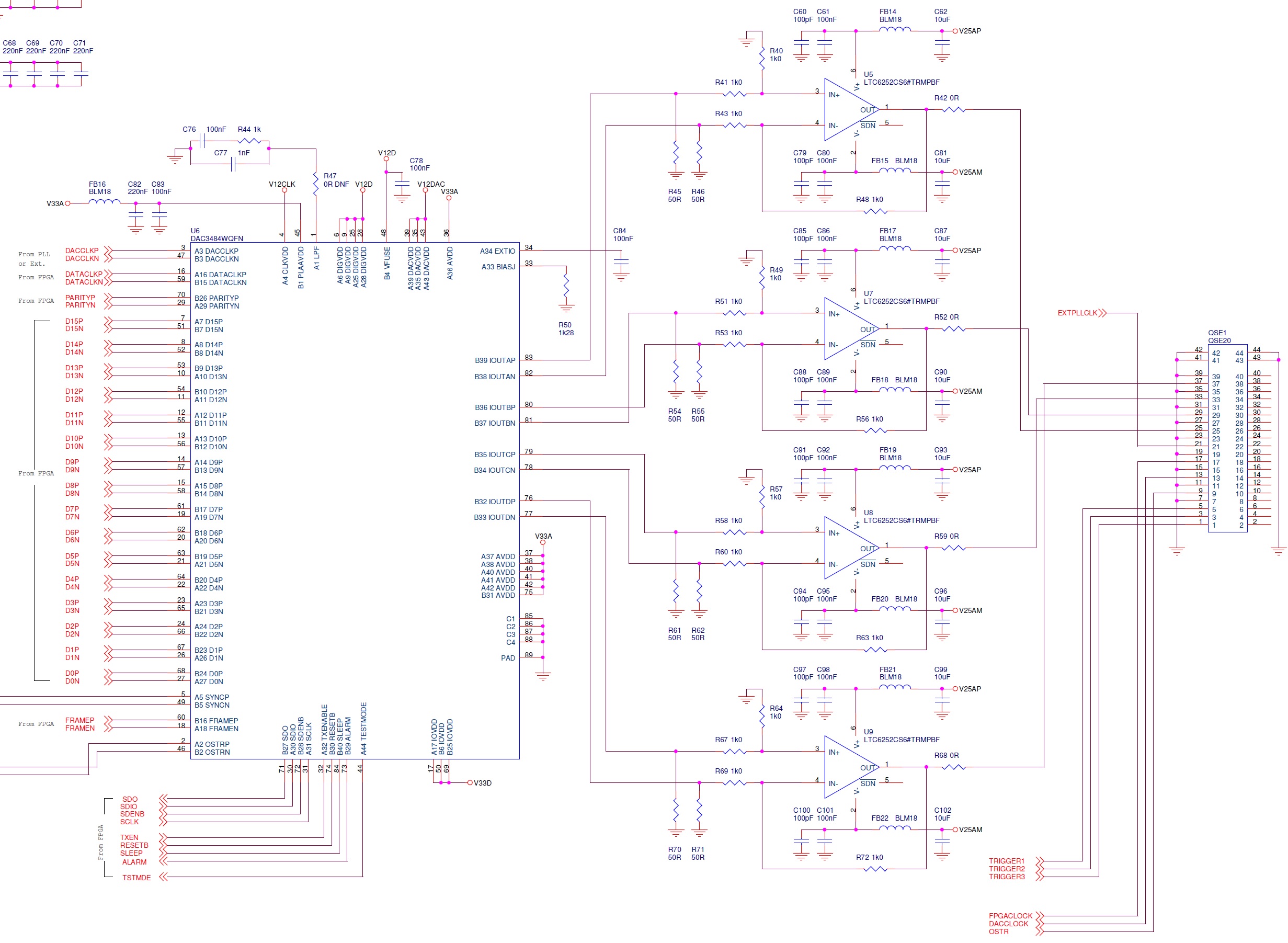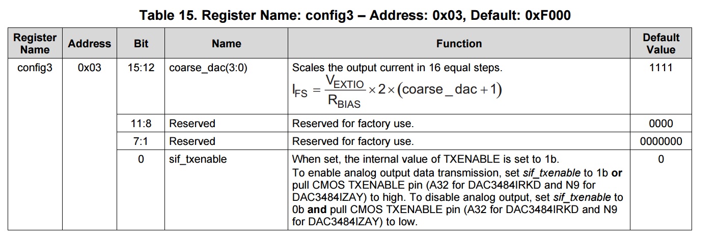 对于粗糙_DAC,默认值为1111。 我们的测试程序(正常工作)在此注册表中有0011。 我们在运算放大器的输出端(在QSE1连接器中测量)确定780mV峰到峰值范围。
