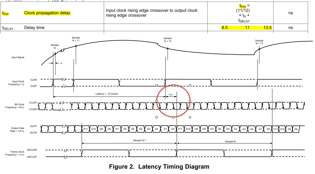 我们可以看到,从帧时钟到采样时钟有额外的延迟(Tpdi),从8.5ns到13.5ns,5ns变体。