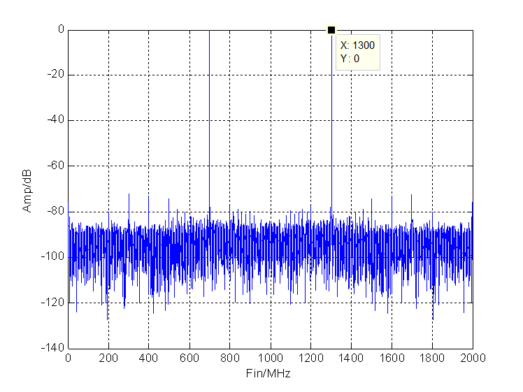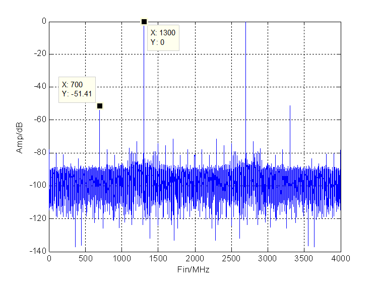 我设计了ADC12DJ3200电路板,并在单通道模式 (JMODE 0)中测试了其特性。 正弦波 被发送至INA进行测试。 我遇到了 一个问题,即通道 A或通道B的SNR (在Fclk=2GHz 和FG_Done=1处)与数据表中的相同,但当数据形成 单通道 数据时会严重降级。 除了频谱中Fin的正弦波信号外,还可以在FS/2+/-Fin处看到大脉冲,这表明信道A和信道B之间存在TIADC增益或计时不匹配。 通过模拟和估计,原因被确认为计时不匹配。