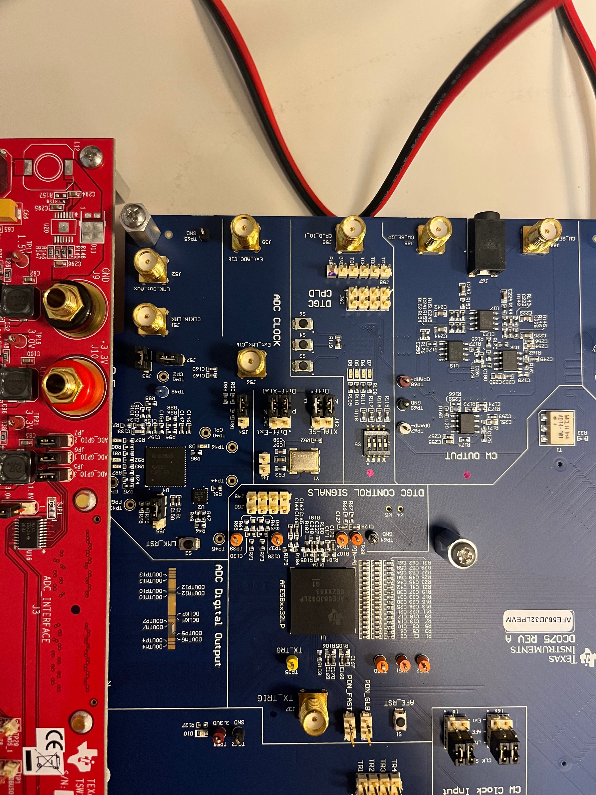 按照 AFE58JD32LPEVM的用户指南SBAU326–2018年8月中描述的步骤,我正在使用AFE58JD32LPEVM和TSW1400EVM设置系统。 除了未连接的可选外部时钟参考外,设置与指南图4中的描述相同。 我已遵循"仅LVDS捕获"的指令,但我获得的峰值不是如第12页的图17所示的5 MHz时的尖锐峰值,而是6.4 MHz时的峰值。 我附上 了HSDC Pro的屏幕截图,其中显示了上述峰值的频率为6.4 MHz,但如果我将生成器连接到频谱分析仪, 我会看到峰 值的频率为5 MHz。 您能否帮助我正确设置系统,以便按照图17中的预期,在HSDC Pro中观察5 MHz的峰值?