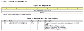 器件型号:ADS54J69 在我们的新产品启动阶段、模拟组的寄存器能够成功写入和读取、而 JESD 组的寄存器无法写入和读取。