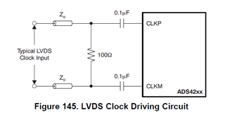 器件型号:ADS4222 我假设该时钟输入 PCB 迹线也需要100欧姆差分阻抗匹配。 (LVDS 时钟)