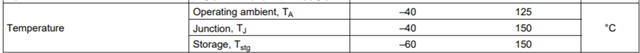 此注释似乎表明应使用§7.3中的表作为参考、以确保组件的完全运行。 此表仅提供125°C 的环境温度、未提供结温数据。 从散热角度来看、如果组件可在125°C 环境温度下运行、则结温应更高、但数据表中未提供该结温。 数据表(第8页)中的典型曲线高达140°C、这就是我假设结温介于140°C 和150°C 之间但我正在寻找验证的原因。