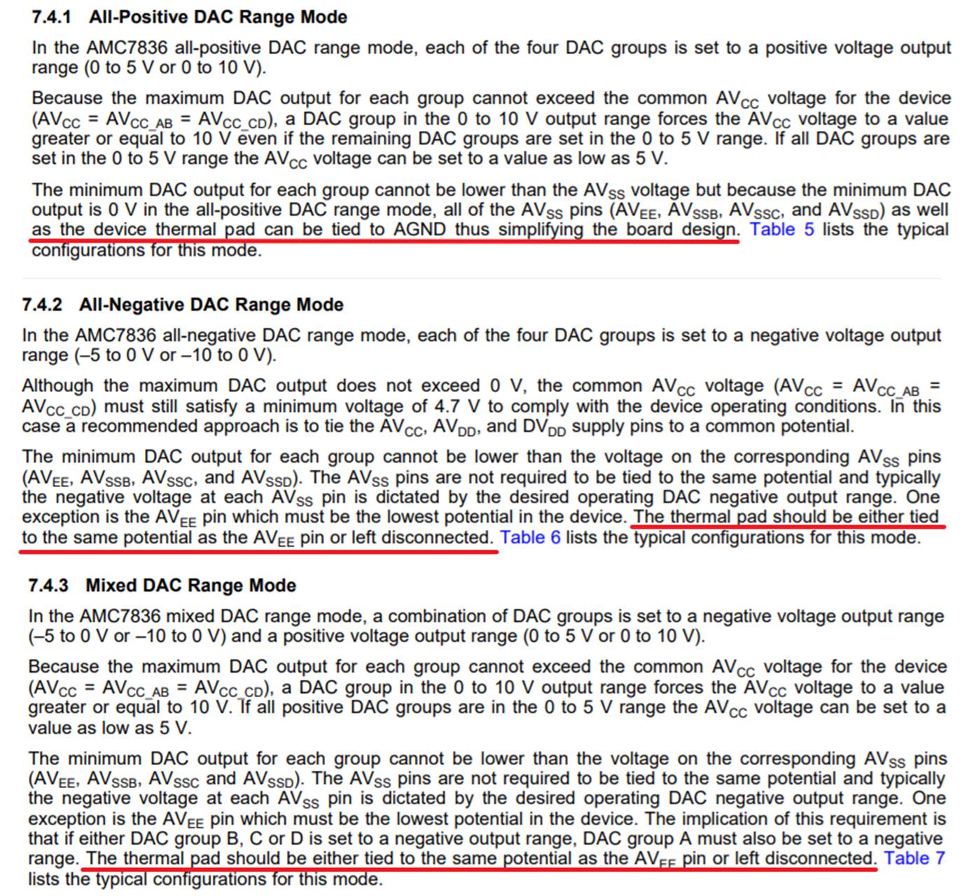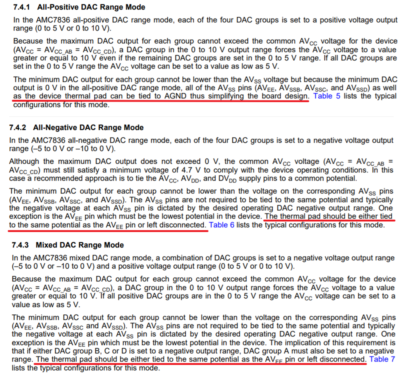 散热焊盘设计。 对于正 DAC 范围模式、这是否意味着散热焊盘 应连接到与 AVEE 引脚相同的电位或保持断开连接? 但它可以连接到 AGND、从而简化电路板设计?