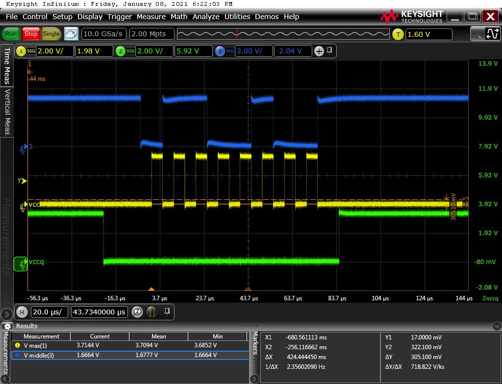 您能否在发送0x64数据时探测 SPI 帧并向我发送波形?