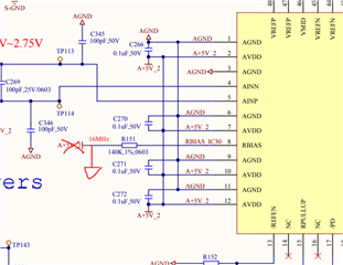 此外、连接到 VREFP、VMID 和 VREFN 引脚的输出电容将影响内部基准缓冲器的稳定性。  我们使用数据表中的建议值验证了性能。  我建议拆下3个额外的22uF 电容器 C338、C339和 C340。