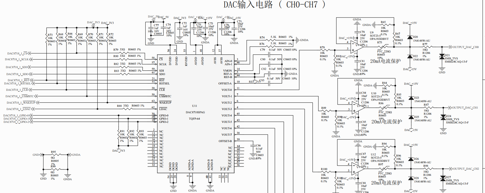 此 PCB 设计用于 双电源、但我只能在0 - 15V 范围内调节 DAC 值、而无需 设置 偏移寄存器。