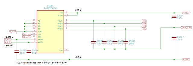 IOVDD 当前为+2.5V (IOVDD 连接到 VDD)、这不应对模拟输出产生任何影响。 此电路是否错误?