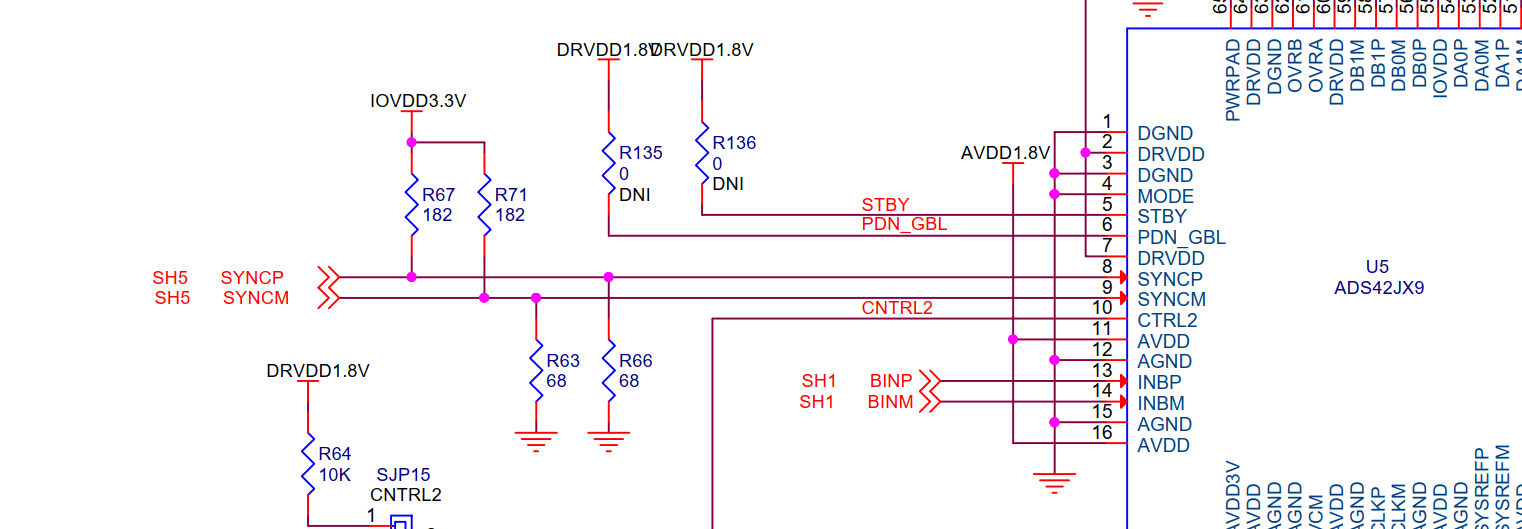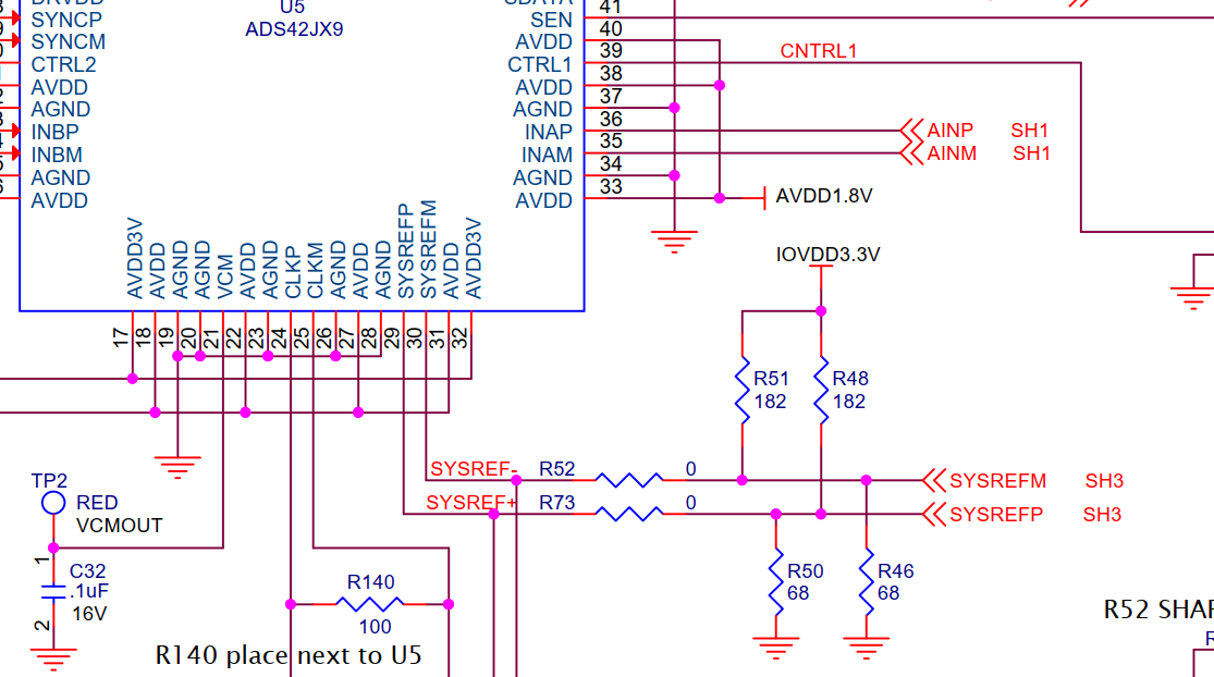 在 ADS42JB69评估板中、SYNC 和 SYSREF 引脚都具有0.9V 共模电压、该电压由外部设置。 我在电路板上进行了相同的设计。