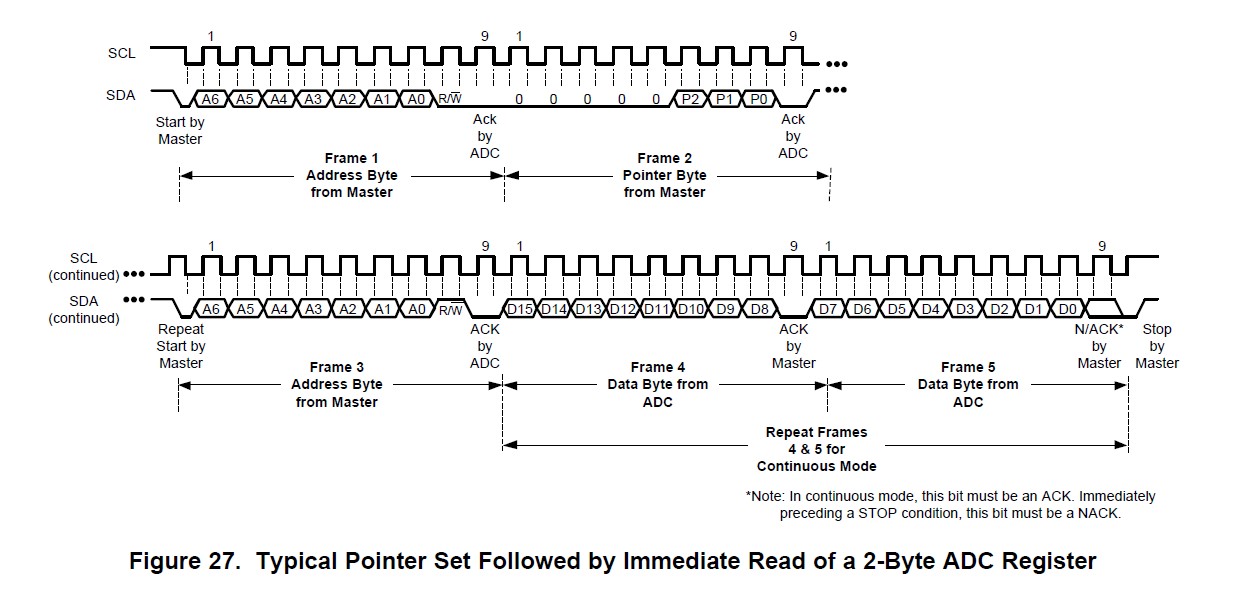 在这之后、第二个帧、您需要设置指针寄存器、如下所示。 要读取转换结果、您需要将最后三个位设置为0、因此命令将为0h。