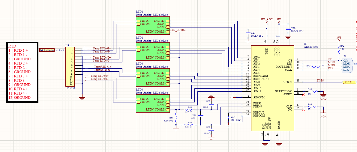 我们遇到了该 ADC 的问题、该器件在运行一段时间后返回错误的测量值。  ADC 设置为按顺序读取4个 RTD 通道。 原理图如下所示。