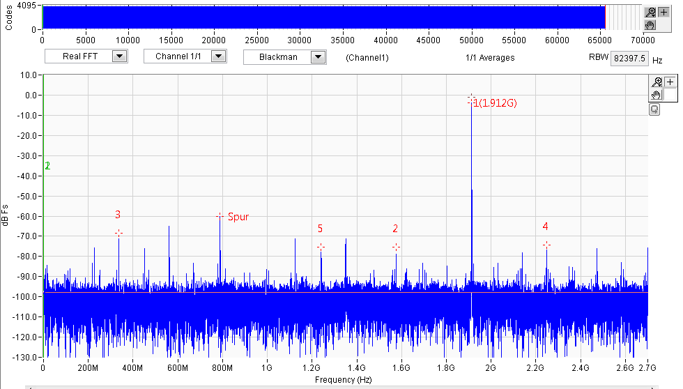 该初始 EVM 具有 ADC 的预量产版本、其中不包括最终设计更改、以提高 FS/2-Fin 交错杂散性能。 我认为这是限制性能的主要因素。