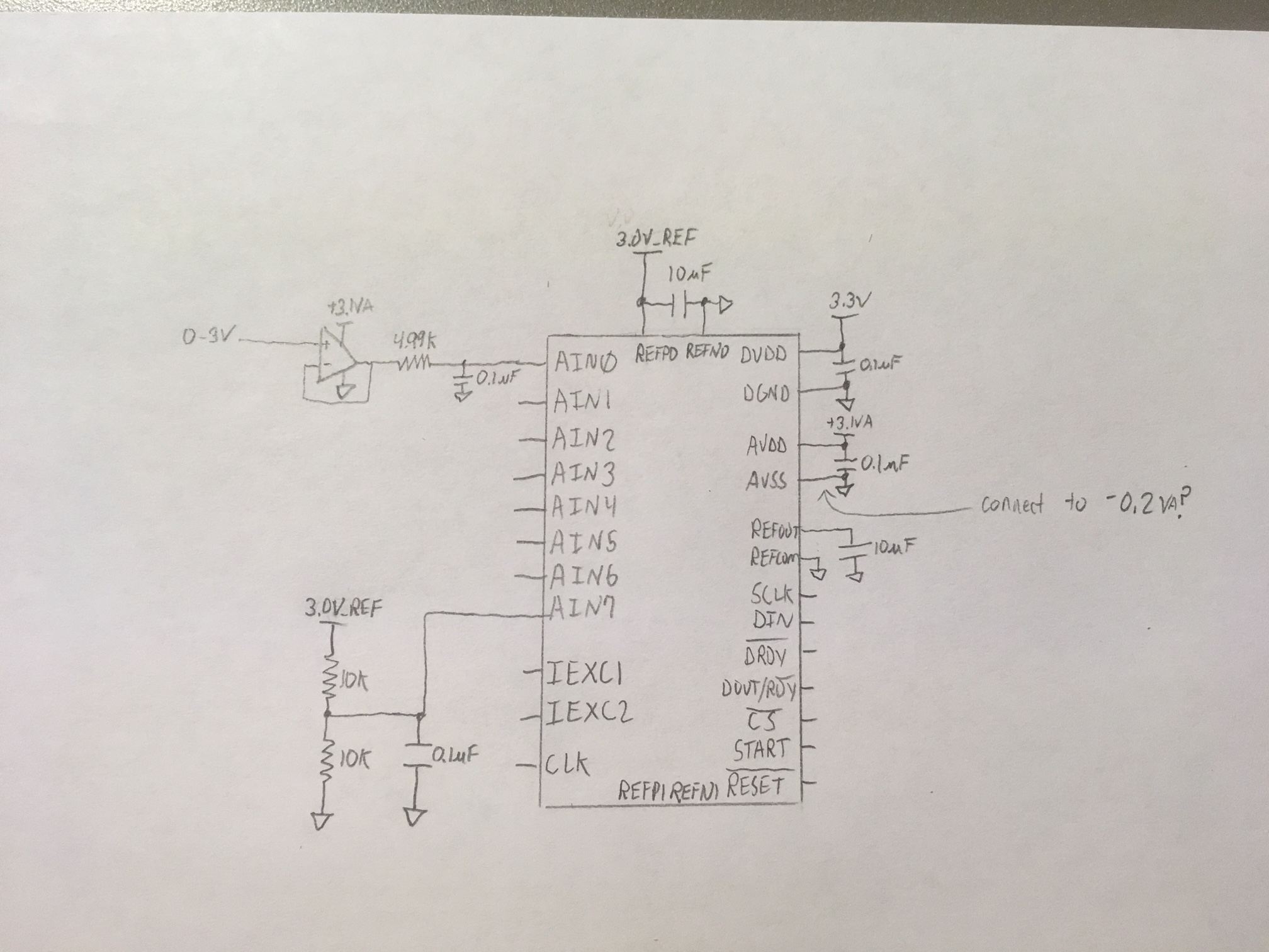 我正在尝试使用 ADS1248创建设计。 我的输入信号电平为单极0-3V。 数据表中针对共模输入范围的公式似乎无法针对我进行正确计算。 我想知道我是否不正确地使用它们。 公式3、当我使用 VINmax 为3V 时、我得到的值没有意义。 最后、我想知道我是否已针对7个通道上的0-3V 单极输入正确配置了该参数。 我们还将使用 PGA 增益1。 此外、我希望有人仔细检查并确保我满足数据表注(2)中的要求。 "(2)当 VREF > 2.7V 时、差分输入电压不得超过2.7V/增益。" 我认为我是因为我在通道7上提供中点基准。 下面给出了粗略的原理图。