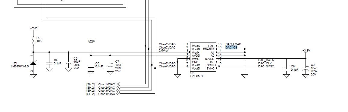 随附的是 DAC8534的原理图。 我们向 CHAN2VDAC 回路施加大约几百伏的 ESD 电压、DAC 输出将锁定。 除非我们对电路板进行下电上电、否则我们无法更改 DAC 的输出值。 是否有办法复位 DAC、使其脱离锁定状态而无需对电路板进行下电上电?
