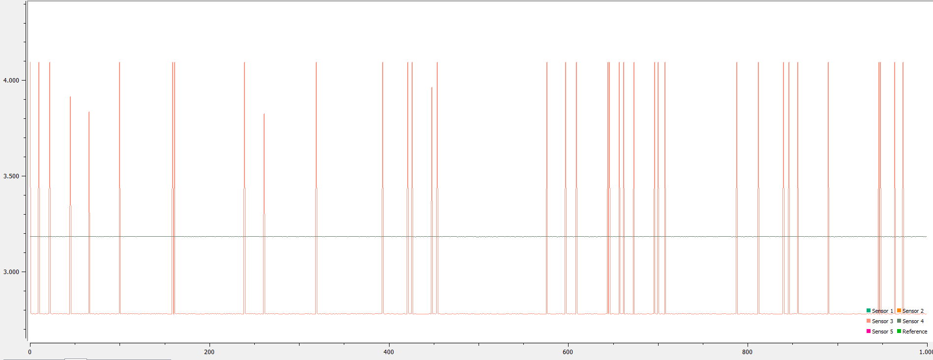 在检查数据寄存器值时、它会以不规则的间隔显示大的尖峰。