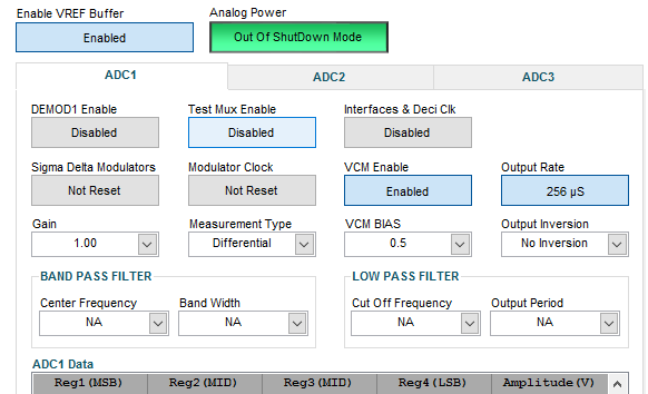 必须打开 VREF 缓冲器、模拟电源和 VCM 使能。