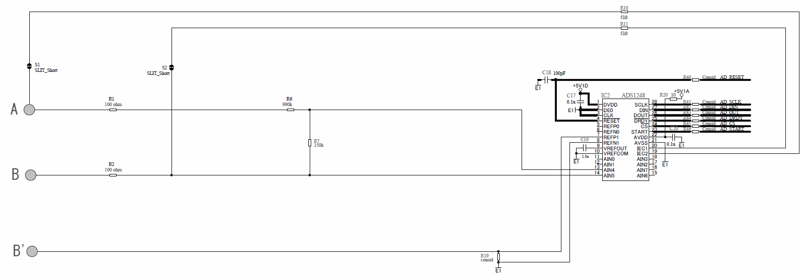 在同一情况下、如果移除 R10 (510ohm)和 R11 (510ohm)、A/D 输出数据显示正常。 (显示线性)
