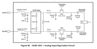 RCR 滤波器无法关闭;请参阅下面的输入网络。 对困惑表示歉意。 该文本旨在 强调 ADC 模拟输入端 RCR 滤波器的重要性。