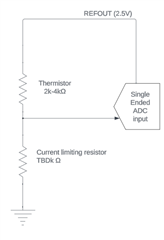 如果我们使用 REFOUT、您的方法好像会大大简化设计(请参阅下文)。 最大的优势是减少 ADC 数量和比例式测量。 我可能希望在5个热敏电阻之间共享一个 REFOUT 引脚。 该引脚上的电流限制是否小于5mA? 当时我以为它已经从模拟电源掉电了、所以可能不会有问题、但我只是想检查一下。