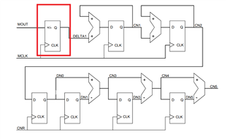 复位时 DELTA1设置为0x00 (我们使用十六进制表示法)、但当 Mout = 1时、DELTA1将递增。