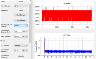 我将尝试描述 ADC 在不同采样率下的运行情况、因此我将尝试为 EVM 提供外部时钟。