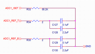 上面是我使用的原理图。 应用程序使用默认设置。 我没有使用 SPI 来 更改新设置。 我检查了引脚:PD = 0、INT/EXT = 3.3V、Reft = 1.945V、RefB = 0.945V。 对于16个电路板、Vcm=1.45V;对于2个电路板、Vcm=0.36V;对于1个电路板、Vcm=0.53V;对于1个电路板、Vcm=0.62V。