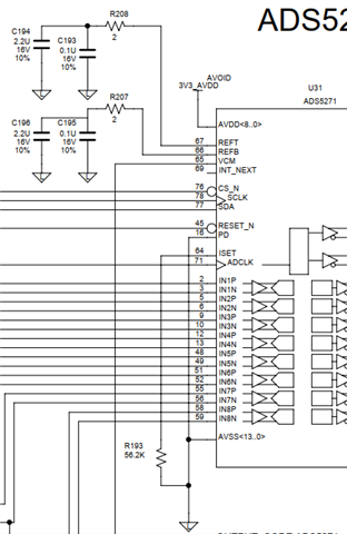 我们在其中一种设计中使用 ADS5271 ADC、尽管我们使用了数据表中推荐的原理图(2 x 2欧姆+电容器且 ISET=56.2k Ω)、但我们已在多个电路板 (可能具有同批次的 ADC)上测得 VREFT–VREFB (1.021V 至1.031V 之间、而数据表中的最大1.025V)(基准电压在生产时进行调整、因此(VREFB)在±25mV 范围内)。