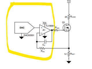 问题2: 该集成电路包含数模转换器和缓冲电路、如下图所示。 灌电流参考文档 可编程低侧灌电流电路(修订版 A)