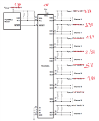 我们需要连接 I2C 多路复用器 TCA9548A、如下图所示。 这是否可行、或者我是否应该使用 I2C 电平转换器(例如 TCA9406)?