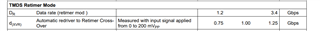 TMDS171还支持转接驱动器和重定时器模式、并且仅在重定时器模式下提供偏斜补偿。 当数据速率介于1.2G 和3.4G 之间时、TMDS171处于重定时器模式。 因此、对于上面的1Gbps 示例、TMDS171将位于转接驱动器中、没有任何偏差补偿。