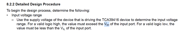 在上述数据表中、为了获得有效的逻辑高电平、该值必须超过输入端口的 VIH。 要获得有效的逻辑低电平、请参阅